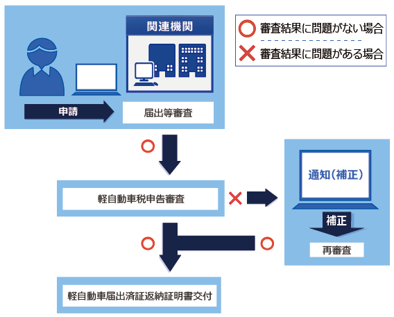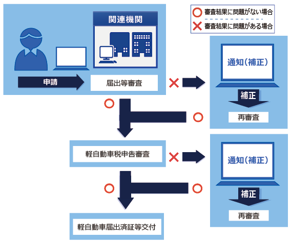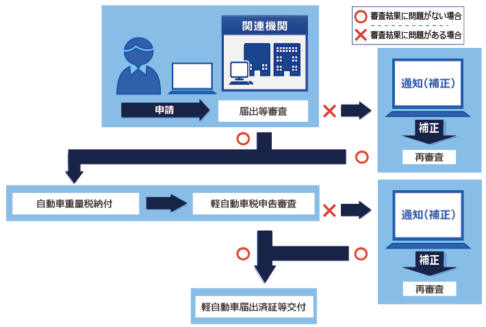 - 記録等事務代行者に対する補正が指示された場合は、記録等事務代行者による交付から、運輸支局等による交付に切り替わるという意味合いになります。記録等事務代行者との相談の上、補正を行うかの判断をしてください。