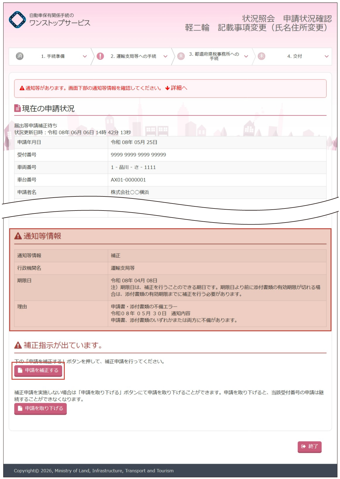 - 運輸支局等から補正の指示がある場合