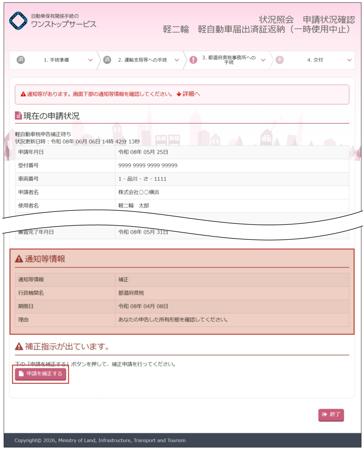 - 軽自動車税申告に関する補正の指示がある場合